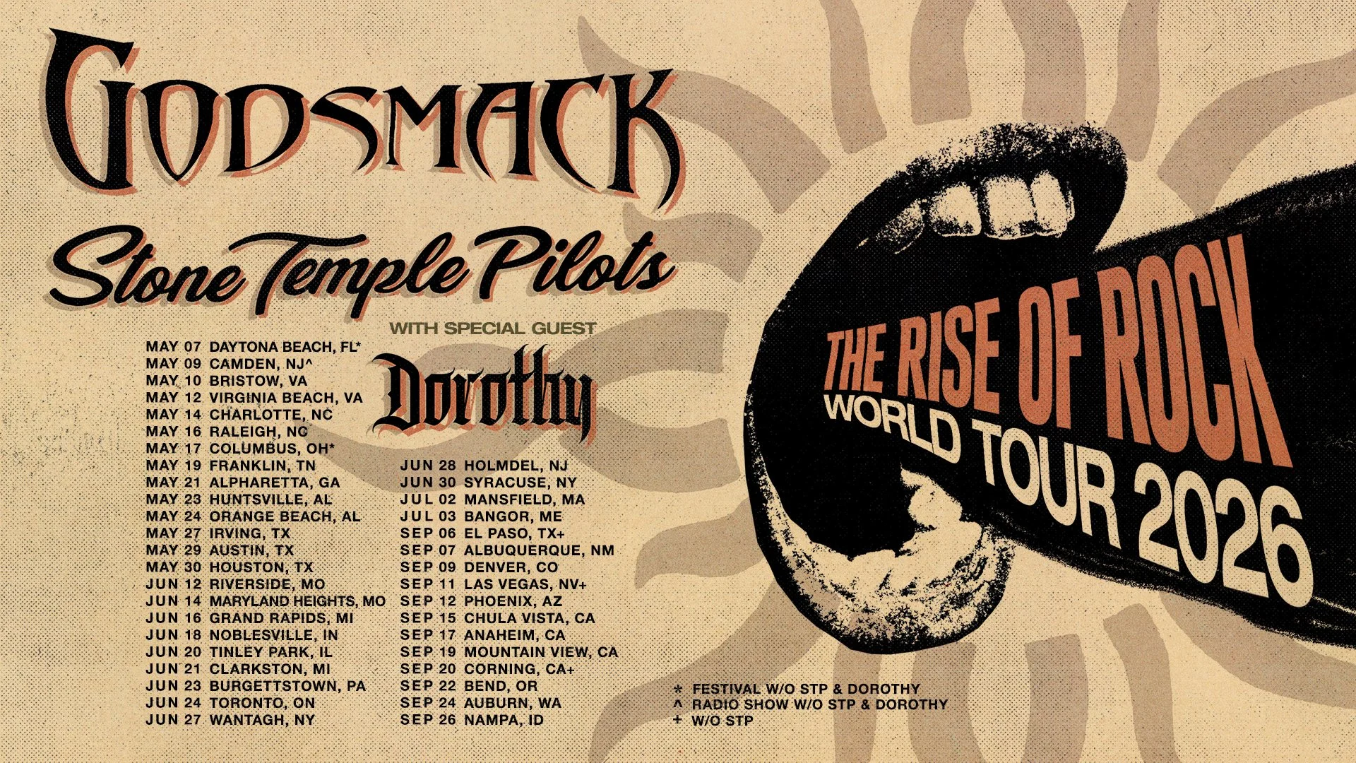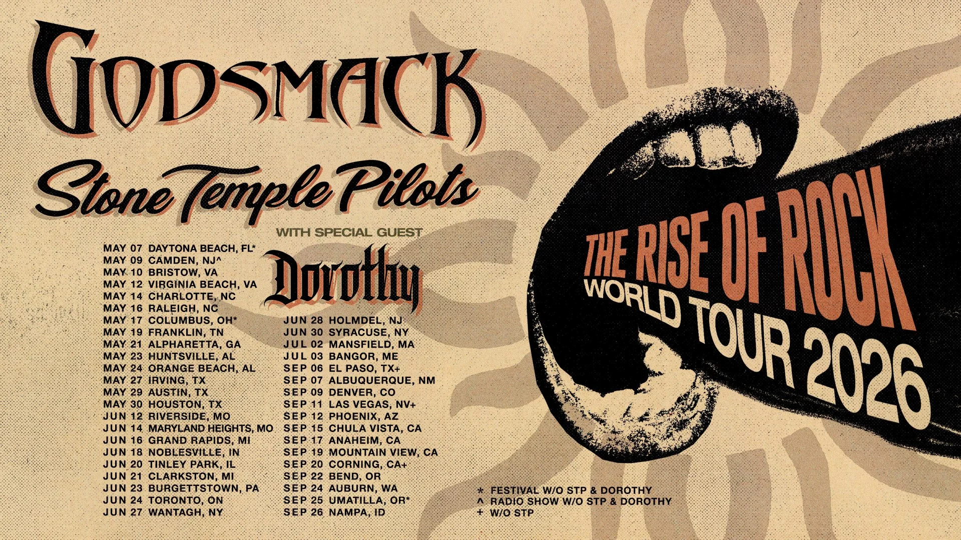 Godsmack's BACK, and we're celebrating "The Rise of Rock" across North America with special guests Stone Temple Pilots and Dorothy…