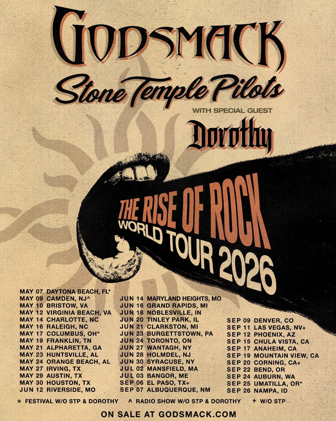 GODSMACK “THE RISE OF ROCK” TOUR 2026 WITH STP AND DORORTHY!